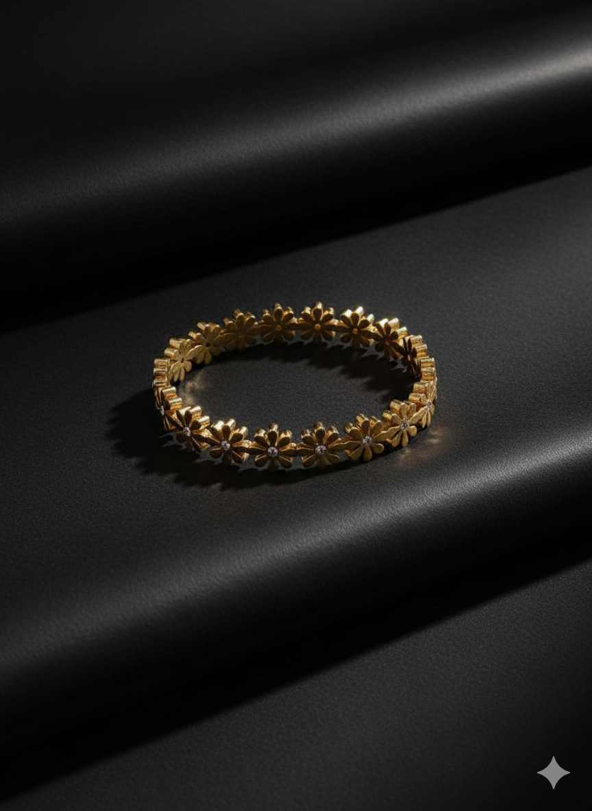 Step into elegance with the Golden Bloom Floral Bracelet ā a stunning gold-tone accessory featuring delicately crafted daisy motifs. Each flower is beautifully detailed and accented with a shimmering stone at the center, capturing the charm of a blooming garden. This piece effortlessly combines nature-inspired beauty with timeless sophistication.