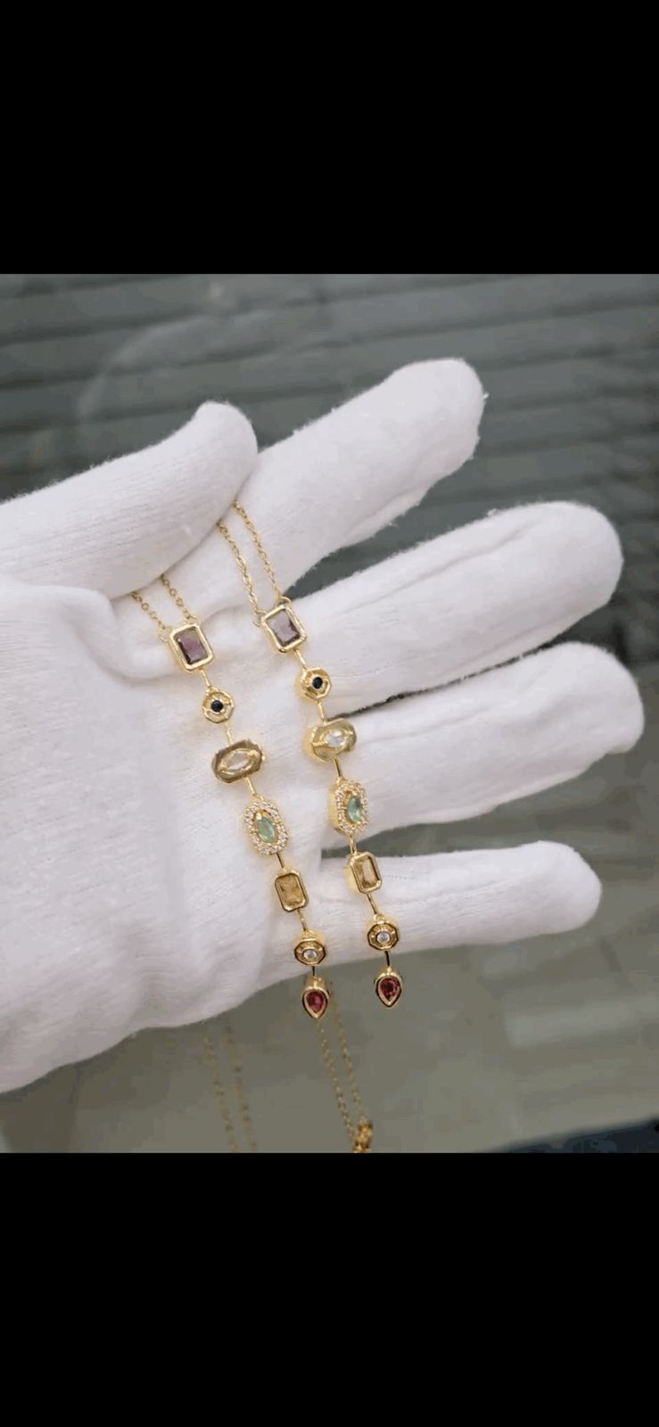 Style this necklace with a saree, a V-neck dress, or a solid top for a chic, clean, and modern look. Its transparent crystals add a sophisticated shine that complements all outfits and skin tones.